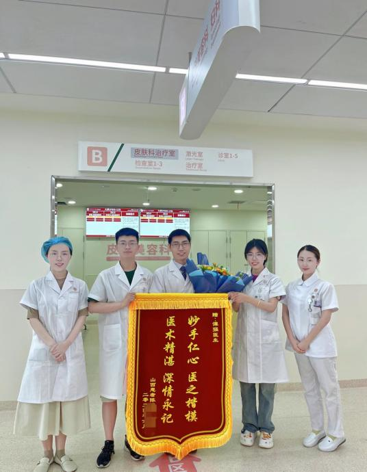 在6月11日,我院皮膚美容科,因一麵火紅錦旗的到來,使得整個(ge) 科室洋溢著溫暖的氣息。遠在山西的患者陳女士寄來了寫(xie) 有“妙手仁心醫之楷模,醫術精湛深情永記”的錦旗送給譚強醫生,以表達感激之情。收到這份錦旗的意義(yi) 並不尋常,陳女士不僅(jin) 對譚醫生的醫術表示了高度的認可和讚揚,更對他的人格魅力和職業(ye) 精神表達了深深的敬意。